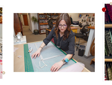 Each of her past experiences has prepared Carol for her role at Katherine’s Collection as director of collections and designer and patternmaker. From the moment she entered the showroom, she felt at home among the explosion of colors, trims, and glitter. Carol never feels as though she is at work when she steps through the doors at Katherine’s Collection, because it is the place where she is able to fully explore her creativity and bring her sparkly ideas to life.
